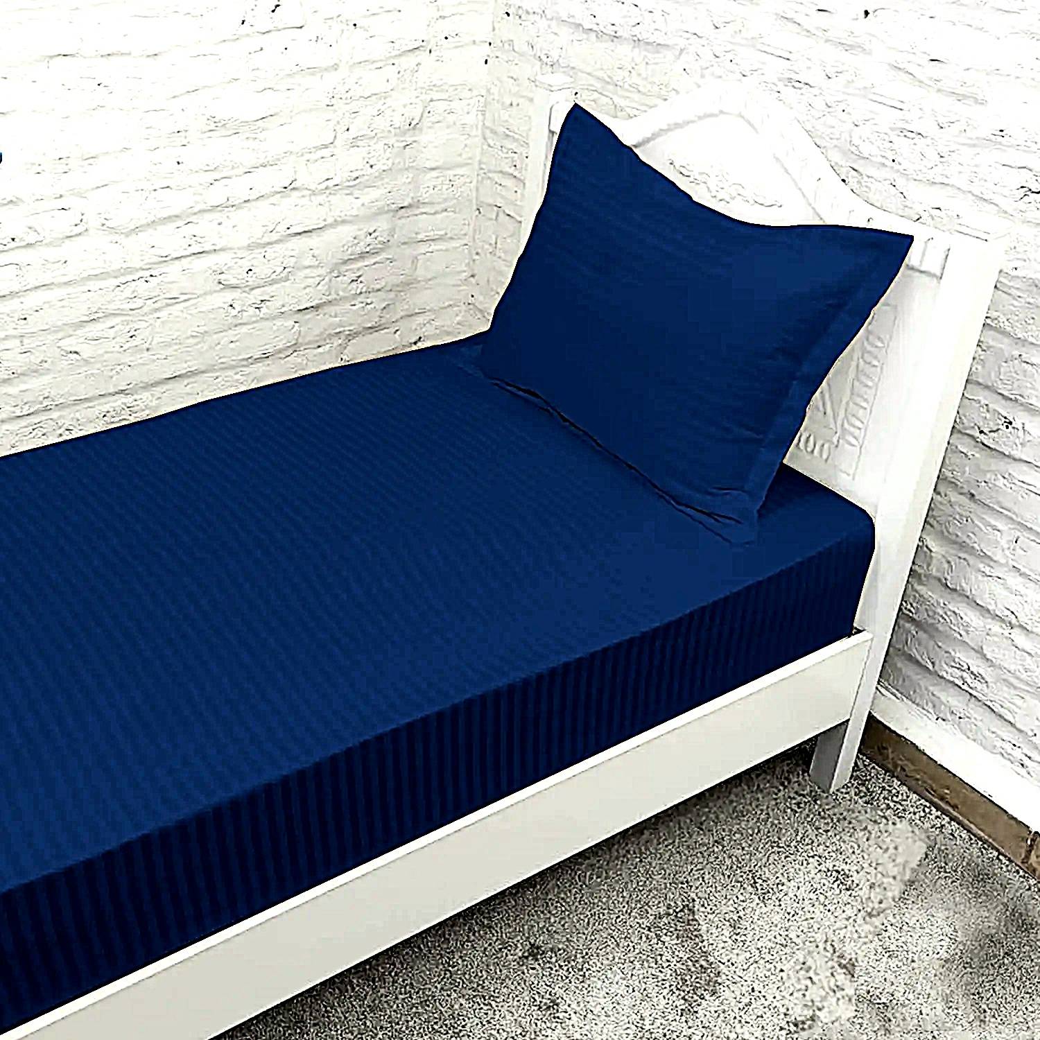 ملحفه کشدار(دورتادورکشدوزی شده )مناسب برای تخت یکنفره به همراه یک عدد رو بالش لب دوزی زیپدار